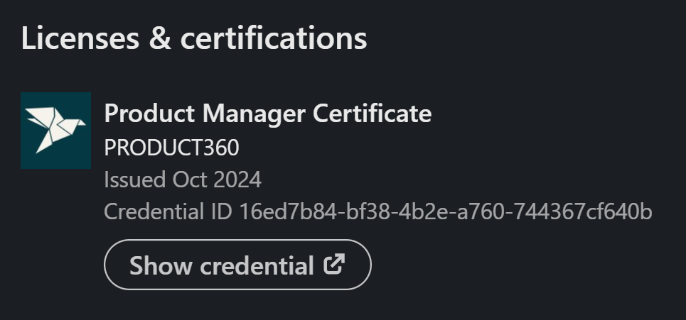 Comprehensive course has honed my skills in end-to-end product development, providing a robust foundation for navigating the dynamic world of PM. A special shout-out to Alex Alwan for delivering engaging and intensive instructor-led classes. Your expertise and articulate approach made the learning experience truly exceptional!